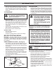 OPERATION • When engine starts, slowly move choke control to "RUN" position as engine warms up. NOTE: A warm engine requires less choking to start. • Move throttle control to desired running position. • Allow engine to warm up for a few minutes before engaging tines. NOTE: If at a high altitude (3000 feet) or in cold temperatures (below 32°F), the carburetor fuel mixture may need to be adjusted for best engine performance. See "TO ADJUST CARBURETOR" in the Service and Adjustments section of this manual.
