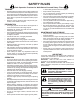 SAFETY RULES Safe Operation Practices for Walk-Behind Powered Rotary Tillers TRAINING • • • • • Read the Manual carefully. Be thoroughly familiar with the controls and the proper use of the equipment. Know how to stop the unit and disengage the controls quickly. Never allow children to operate the equipment. Never allow adults to operate the equipment without proper instruction. Keep the area of operation clear of all persons, particularly small children, and pets.