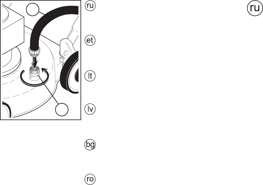 • Pievienojiet šļūteni (1) uzgalim (2).