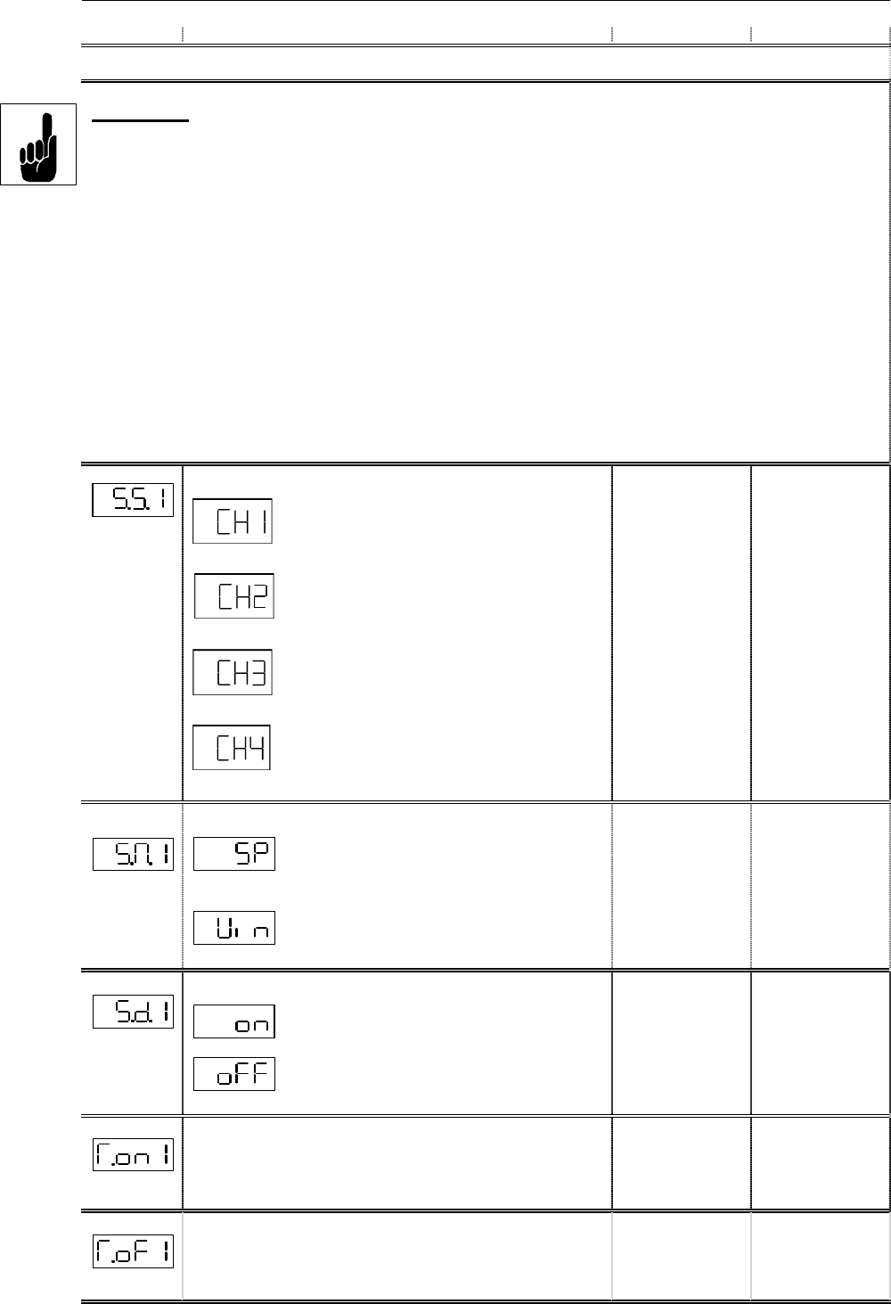 The default settings of the upper and lower limits of channels 1 to 4 (LO.1 to LO.4 and Hi.1