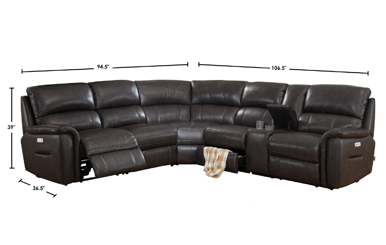 Camino Casual Gray Genuine Leather Reclining Sectional
