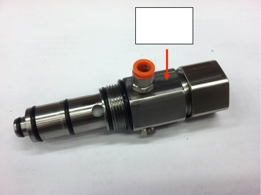 5. Screw new valve into manifold until hand tight and threaded pilot port is facing forward