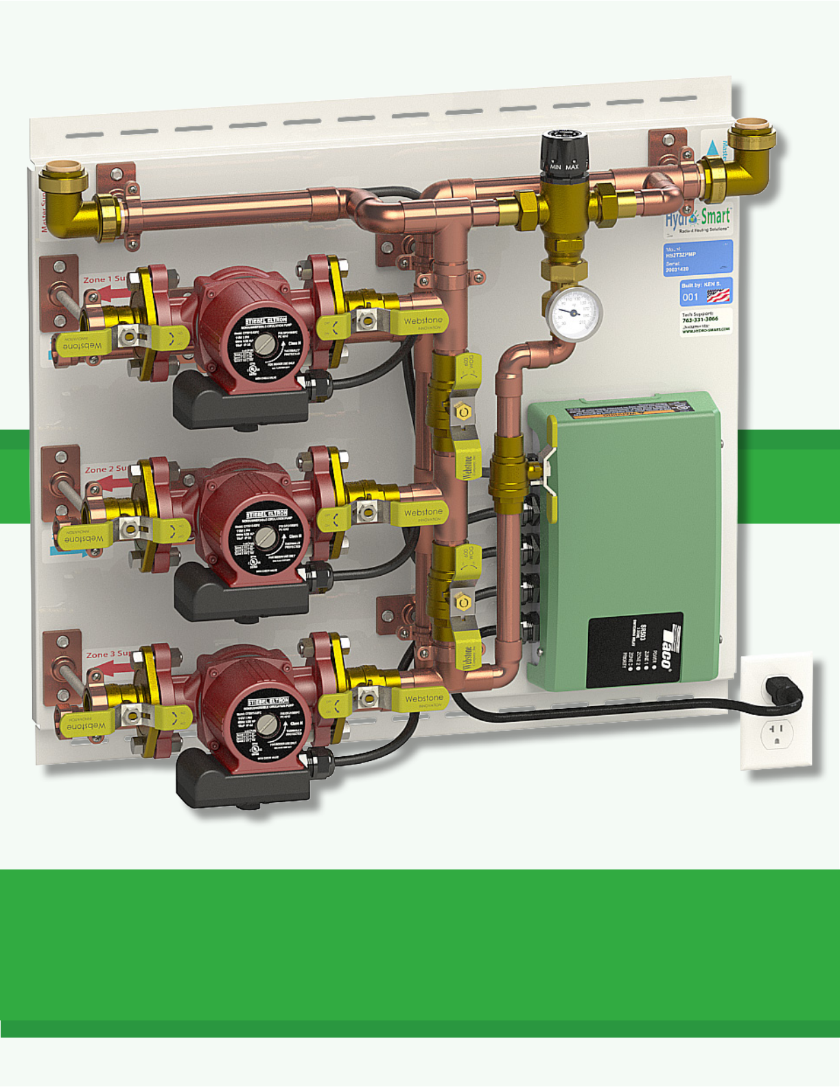 The HS2T3ZPMP is a 2 Water Delivery Temperature, 3 Zone by Pumps Zone Panel. This panel can be used with The HSPS120MPH, HSPS190MPH, HSPS150MPH-HTP, or the HSBP6W-HS115-MPH integrator panels. This panel is desinged to be used when you have two different emitter types that reqire two different water deliver temperatures. For example, tubing in concrete should never go above 130° while baseboard usually requires 145°-160°. If you had both of these emitters, you would need a 2 Temp Panel.