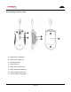 Mouse Overview: A- Left click button B- Right click button C- Mouse wheel D- DPI button E- Forward click button F- Back click button G- Mouse skates H- Optical gaming sensor Document No. 480HX-MC003B.