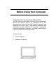 Table of Contents BEFORE USING YOUR COMPUTER ................................................. 1 Product Features.......................................................................... 2 Installation Guidelines................................................................... 3 CHAPTER 1.............................................................................. 5 GETTING STARTED ...................................................................... 5 Unpacking the Product............................