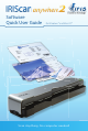 This Quick Start Guide provides general guidelines for installing and using Readiris™ Pro 12 and Cardiris™ Pro 5 provided with IRIScan™ Anywhere 2. For detailed instructions on Readiris™ Pro 12 and Cardiris™ Pro 5, refer to their complete User Guides provided with your product: From the Windows Start menu, click All Programs > I.R.I.S. > Readiris™ Pro 12 > User Guide From the Windows Start menu, click All Programs > I.R.I.S.