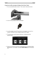 Gyors használati útmutató - Magyar 5. A beszkennelt dokumentumok továbbítása számítógépre/táblagépre A számítógépre kétféleképpen lehet a beszkennelt dokumentumokat továbbítani: a mini USB kábel vagy microSD kártyaadapter használatával. A mini USB kábel használata (Windows és Mac operációs rendszeren) 1. Kapcsolja be az IRIScan™ Bookot. 2. Csatlakoztassa a mellékelt mini USB kábelt mind az IRIScan™ Bookhoz és a számítógéphez. 3.