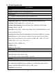 Chapter 5. Troubleshooting Before you send this IP Camera back to your dealer when you found this IP Camera is not working properly, please checks the table as below to save your time. Problem description Can’t connect to IP Camera Possible solution(s) Check the IP address and port number is correct or not Make sure the entry User name/Password is correct. Make sure the port number is opened from the NVR and Router. Make sure the network cable is correctly connected to your local area network.