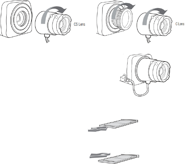 Mounting the CS lens: Turn the optional CS lens clockwise to insert it.