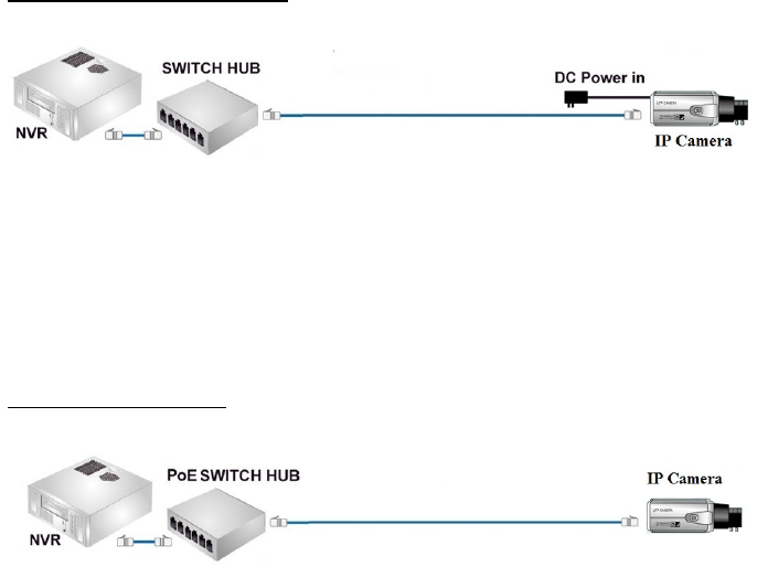 Ethernet cable. Follow the above illustration to connect the Network Camera to a PoE-enabled