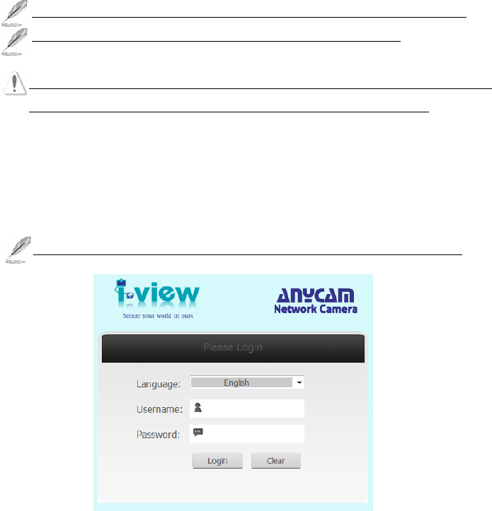 by entering IP address in address bar. When you connect to IP Camera, the use login screen will