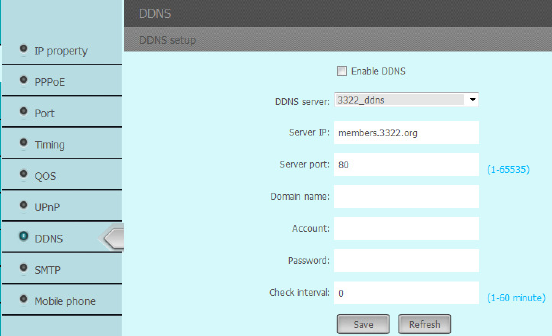 (3) Enter the Port, User Name, Password registered on the DDNS website and the check interval