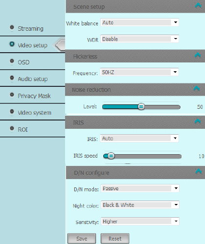 Sensitivity: Choice “ Higher” mode turn into the B/W at high Illumination. Click Save