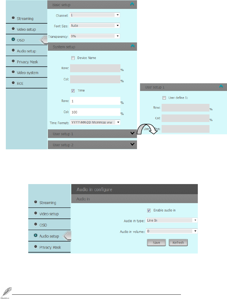 Audio setup: Click this button to setup the audio recording, it supports the gain from 1-100. there