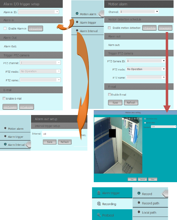 Alarm trigger: The alarm trigger almost same as Motion alarm, please refer the description of