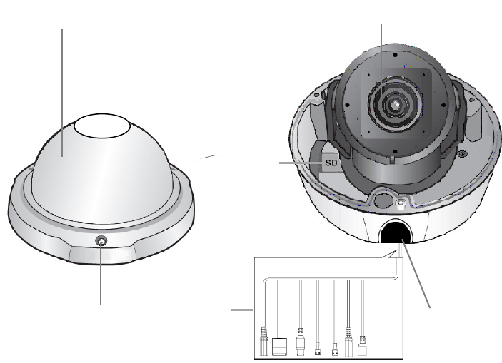 Hexagon screw: Loosen 3 ea screws to take off the cover to fix camera housing.