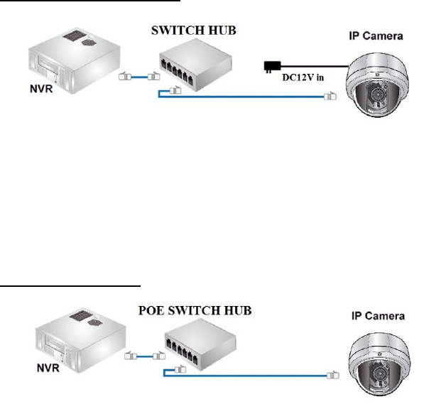 Ethernet cable. Follow the above illustration to connect the Network Camera to a PoE-enabled