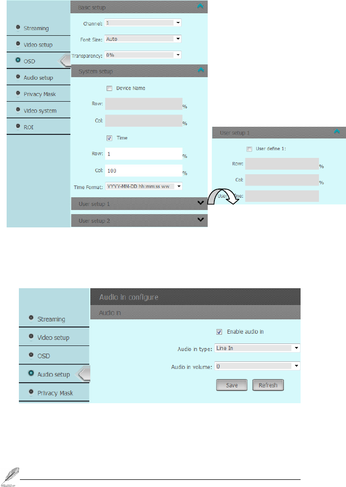 Audio setup: Click this button to setup the audio recording, it supports the gain from 1-100. there