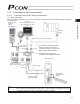 Caution: Do not connect an equipment to the mini DIN connector and D-sub connector at the same