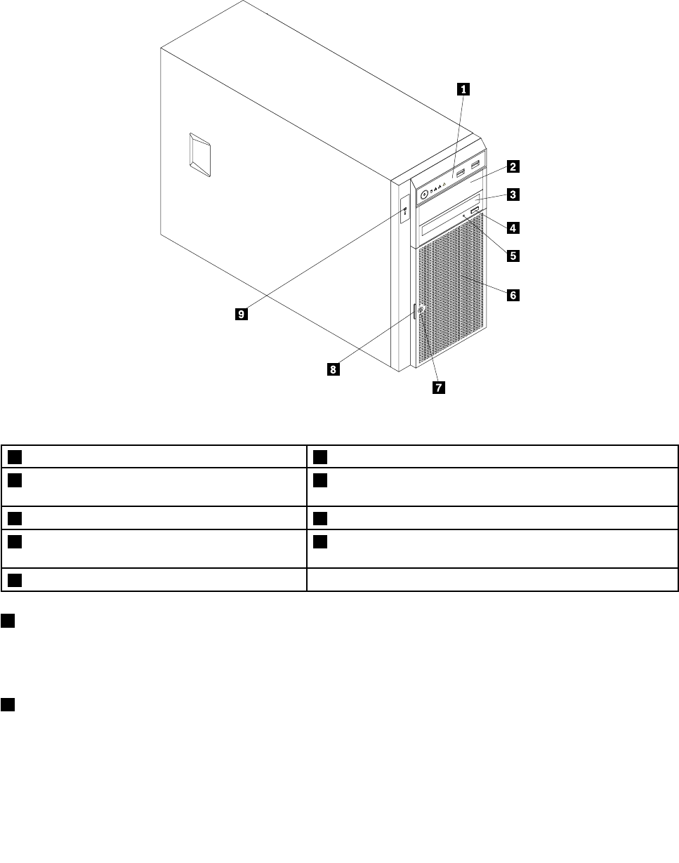 Thefollowingillustrationshowsthefrontviewoftheserver.