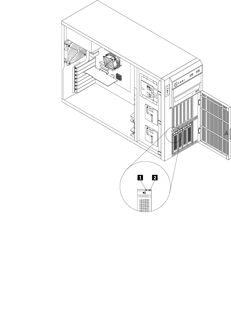 Eachhot-swapharddiskdrivehastwostatusLEDsonthefront.Unlockandopenthefrontdoortogain