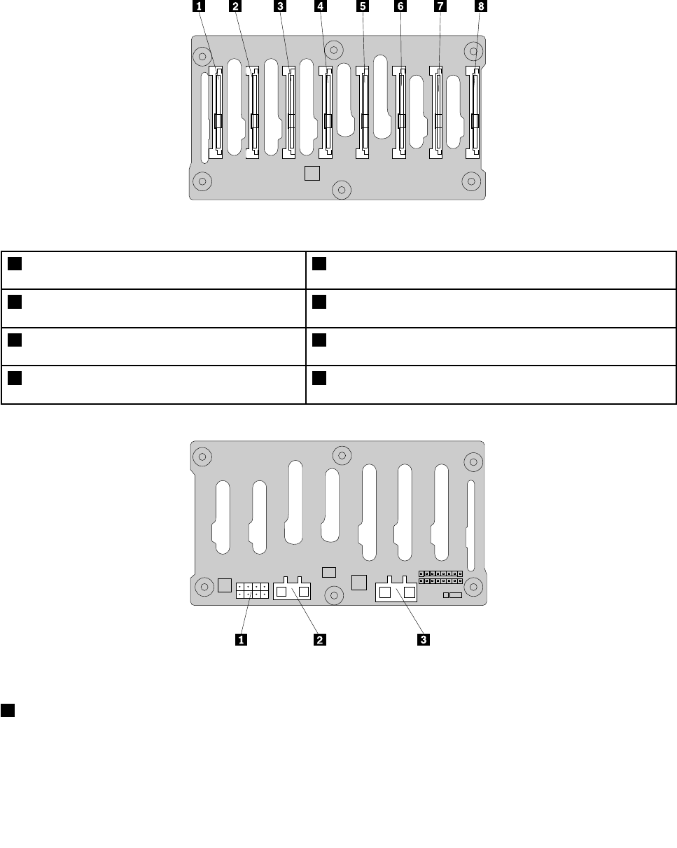 Thefollowingillustrationsshowtheconnectorsonthe2.5-inchhot-swapharddiskdrivebackplane.