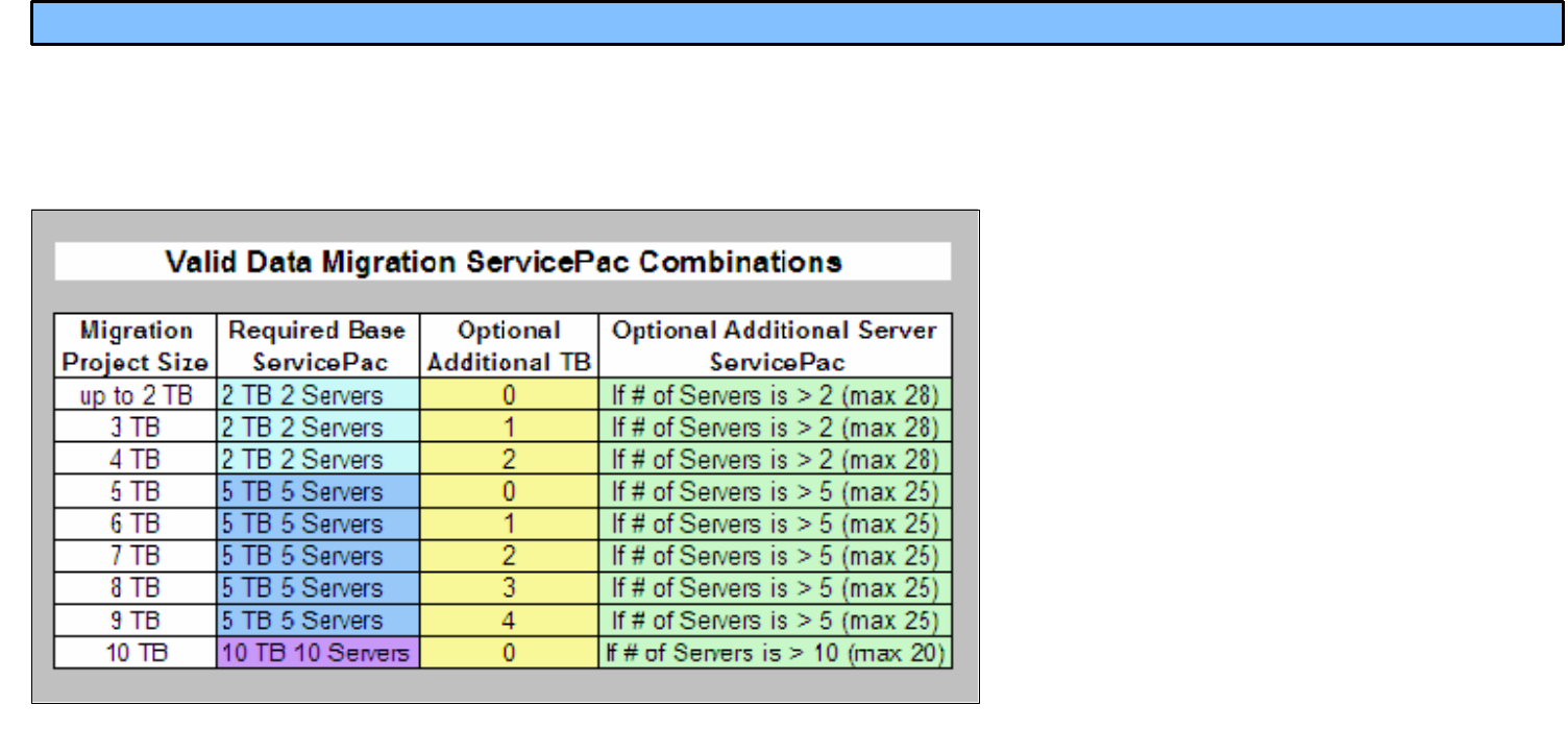 The maximum project size with Data Migration ServicePac is 10TB. The max number of local Servers is 30. Price include travel and lodging cost