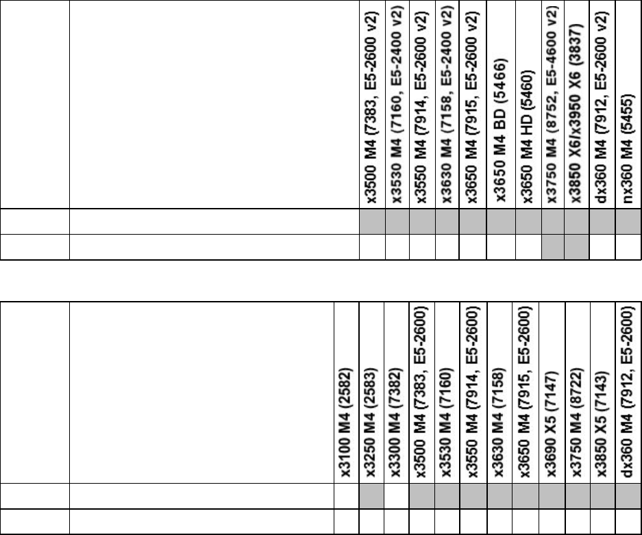 Table 4. Server compatibility, part 3 (M4 and X5 systems with v1 processors)