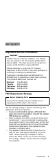 error log and run the test again. Do not replace any FRUs if log errors do not reappear. Be careful not to replace a non-defective FRU. What to Do First The servicer must include the following in the parts exchange form or parts return form that is attached to the returned FRU: 1. Name and phone number of servicer 2. Date of service 3. Date when part failed 4. Date of purchase 5. Failure symptoms, error codes appearing on the display, and beep symptoms 6.