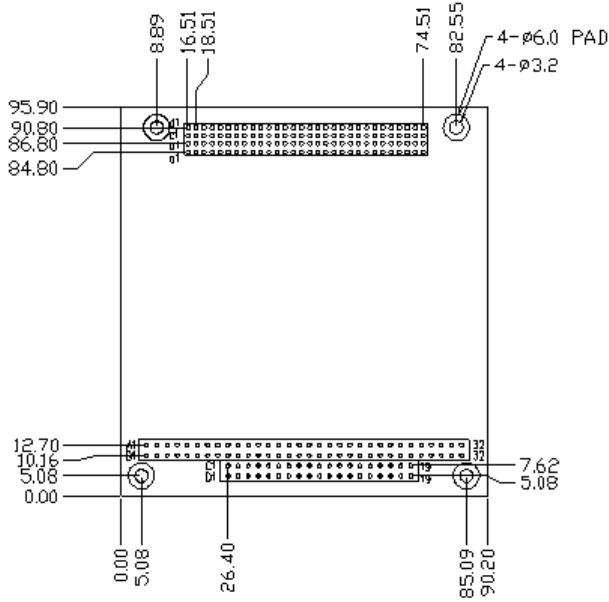 Figure B.2: PC/104+ module dimensions (mm) (±0.1)