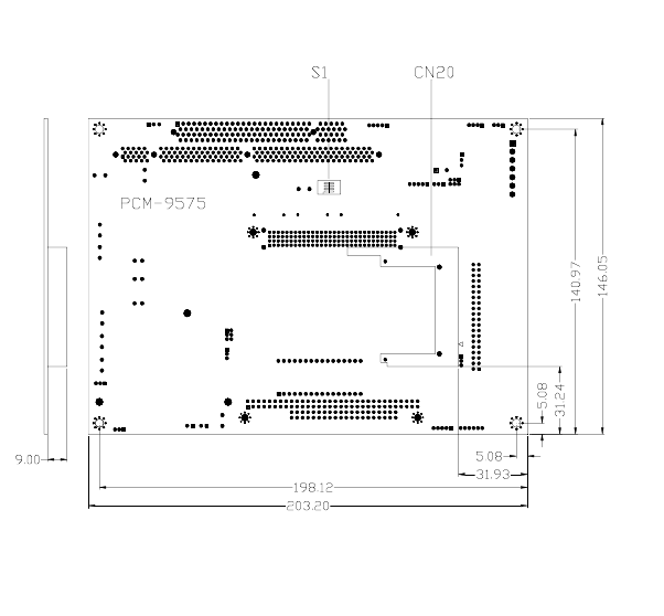 Figure F.3: PCM-9575 Mechanical Drawing (solder side)