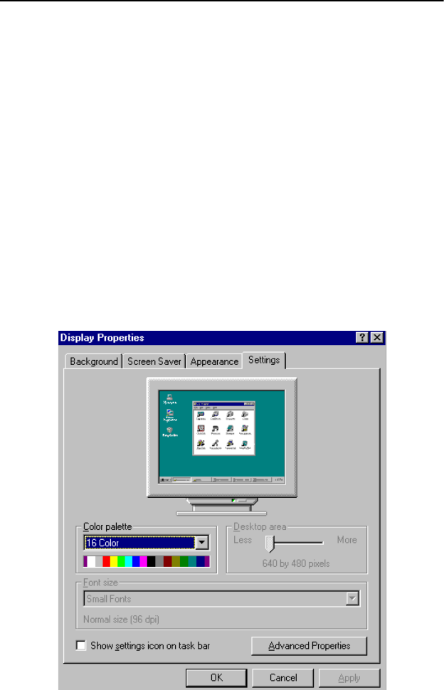 Step 1. Select "Start", "Settings", "Control Panel", "Display", "Settings”,