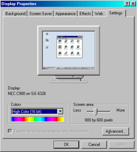 Step 1. Select "Start", "Settings", "Control Panel", "Display", and "Set-