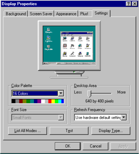 Step 2. Choose the "Settings" tab, and press the "Display Type" button.