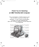 Title: C79EGMST CreationDate: 02/10/98 09:24:42 Thank You for Selecting an IBM ThinkPad 600 Computer We have developed this ThinkPad computer to meet both your technical requirements and your high expectations. To help us continue to build products that address your mobile computing needs, please take a moment to complete the ThinkPad* Registration in the Setup Guide.