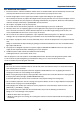 7. Appendix If there is no picture, or the picture is not displayed correctly. • Power on process for the projector and the PC. Be sure to connect the RGB cable between the projector and the computer before turning on the computer. There are some notebook PCs, which do not output signal unless there is a projector or monitor connected first. NOTE: You can check the horizontal frequency of the current signal in the projector’s menu under Information.