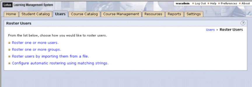 the page description for the rosterUsers page (“From the list below, choose how you would like
