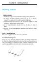 Chapter 2 Getting Started Importing contents Via a computer The device supports the USB Mass Storage Device function. To import contents (ebooks, photo etc) on to the device, connect the device to PC via the supplied USB cable. Upon successful connection to PC, the device will enter USB mode and all operation will be halted. Go to [My Computer], double click on the device’s disk to open. Perform the file management operation like with any other USB device.