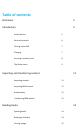 Table of contents Disclaimer 5 Introduction 5 Inside the box 5 Parts and controls 6 Turning on/and off 7 Charging 7 Inserting a memory card 8 The Home menu 9 Importing and transferring content 11 Importing content 11 Importing DRM content 11 Authorization 12 Transferring DRM ebooks 12 Reading books 14 Opening books 14 Book page interface 14 Turning a page 15