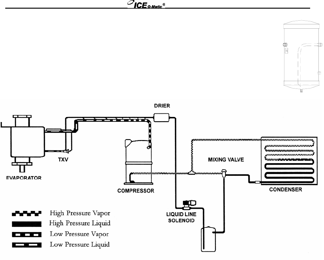 during the freeze cycle. The receiver also stores liquid refrigerant during the off