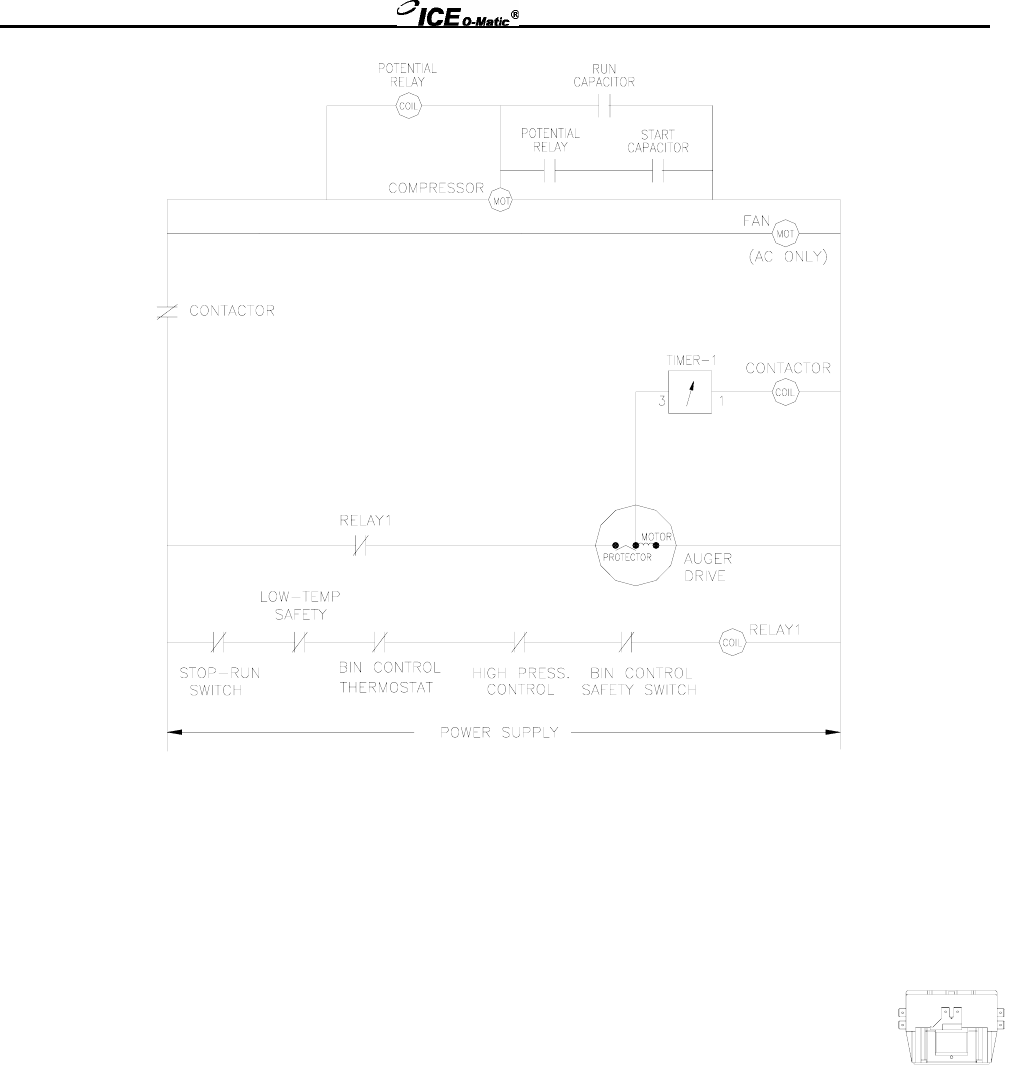 When the selector switch is in the ICE position, the contactor coil is energized and