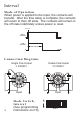 Interval Mode of Operation When power is applied to the input, the contacts will transfer. After the time delay is complete, the contacts will return to their off state. The contacts will remain in the off state indefinitely unless power is reset. INITIATE INPUT VOLTAGE 0V LOAD VOLTAGE TIME TIME DELAY 0V TIME Connection Diagrams Single Pole Output 1 FORM C Double Pole Output 2 FORM C A B C 4 Mode Switch, Interval (See programming instructions on P.
