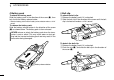 1 ACCESSORIES ï Battery pack D Belt clip To attach the battery pack: Slide the battery pack in the direction of the arrow (q), then lock it with the battery release button. To attach the belt clip: q Release the battery pack if it is attached. w Slide the belt clip in the direction of the arrow until the belt clip is locked and makes a ‘click’ sound. • Slide the battery pack until the battery release button makes a ‘click’ sound.
