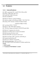 COM1 RS-232 or RS-485 RS-232: TXD,RXD,RTS,CTS,GND RS-485: D1+, D1-, self-tuner ASIC inside(7522A/7524) Communication speed: 115200 max. COM2 RS-485: D2+, D2-, self-tuner ASIC inside Communication speed: 115200 max. Display 7-segmemt LED: 5-digit (for 7188XBD) Power Power requirements: 10 to 30VDC(non-regulated) Power consumption: 2.0W for 7188XB 3.0W for 7188XBD For ODM User SRAM can be 512K max. COM2 can be 3000V isolated EEPROM can be 32K bytes 7521/2/2A/3/4/7 Series Hardware User’s Manual, Ver. 1.