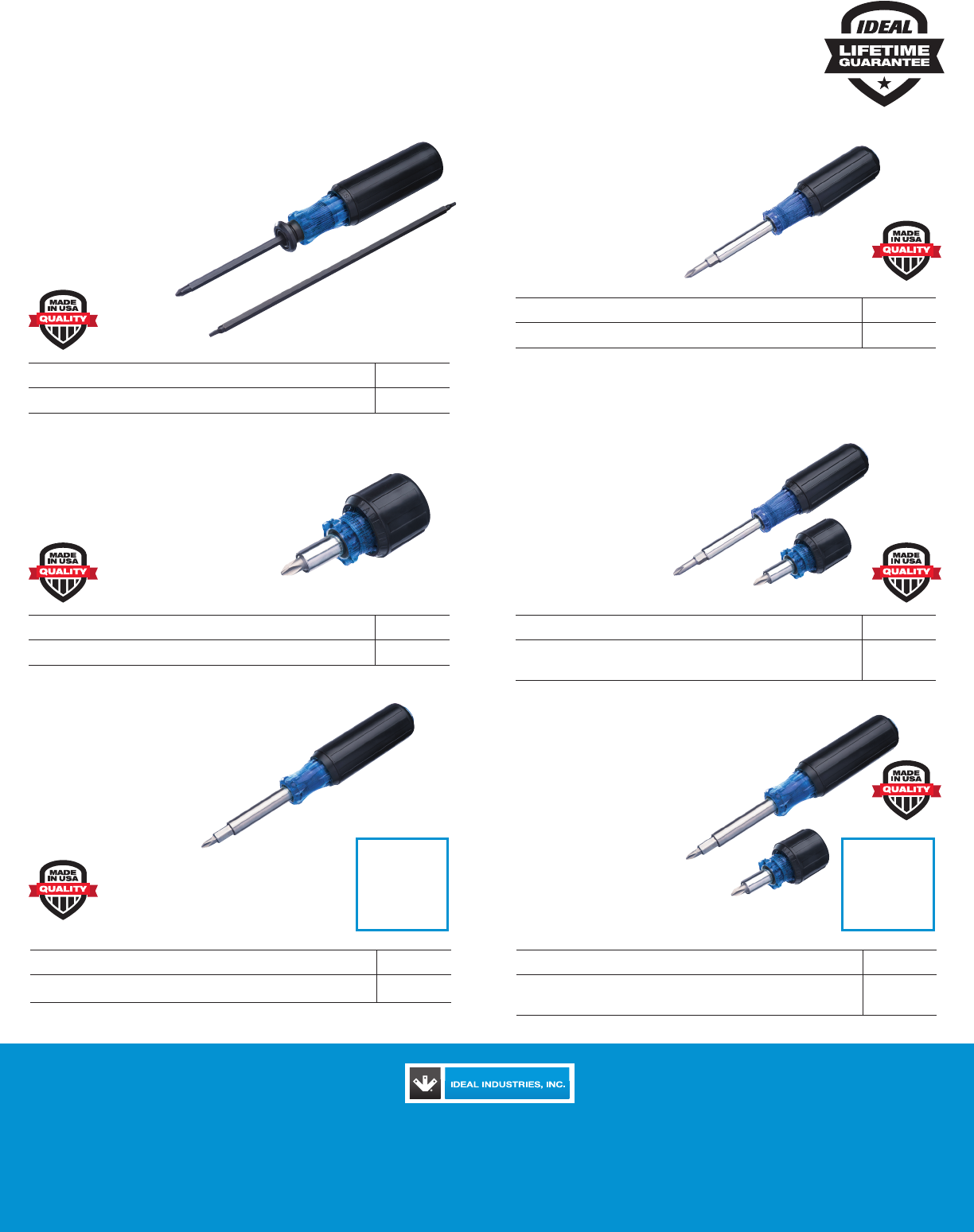 • 3/16”, 1/4”, 5/16” & 3/8” Hex