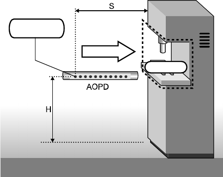 Example in which the direction of entry is horizontal to the safety light curtain