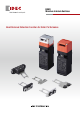 HS5D Miniature Interlock Switches Head removal detection for safer performance. • Head removal detection function turns OFF the main circuit (11-12) when the head of the HS5D is removed. • 3 contact types with dual enabling contacts and a monitor contact are available. Can be installed in narrow spaces. (30W × 30D × 91H mm) • The actuator is interchangeable with HS5E and HS5L. • Double insulation structure eliminates the need for grounding.