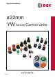 ø22 YW Series Control Units Operator Position No. of Positions Contact Configuration 2NO (20N1) 2NC (02) 2NC (02N1) 1NO-1NC (11) 45° 3-position Maintained L C R 1NO-1NC (11N1) 1NO-1NC (11N2) 1NO-1NC (11N3) 1NO-1NC (11N4) 3NO (30) 3NC (03) 2NO-1NC (21) 1NO-2NC (12) Metal Bezel Contact Block Mounting Position L 2NO (20) Type No.