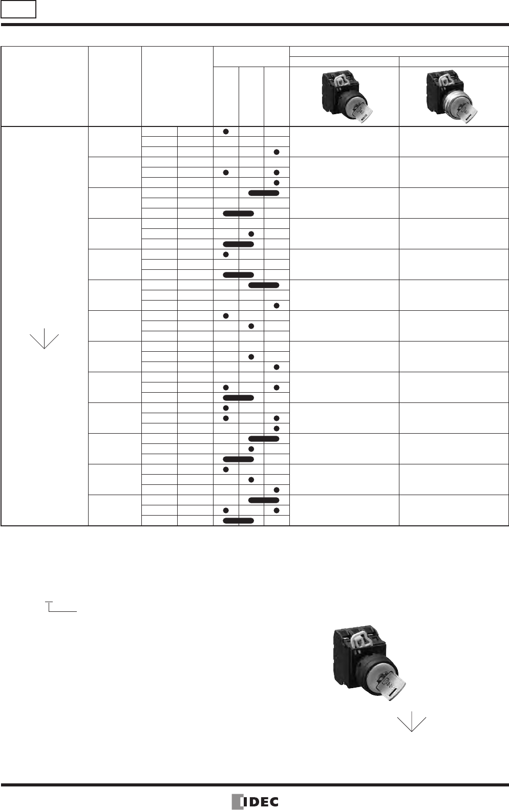 • On the maintained types, the key can be removed from every position. Key retained positions are also available. See the ordering information
