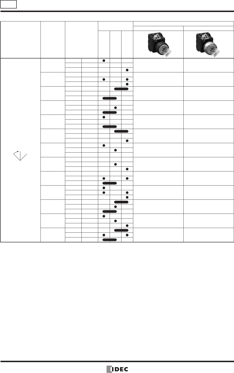 • On the spring-returned types, the key can be removed only from the maintained position. Key retained positions are also available. See the